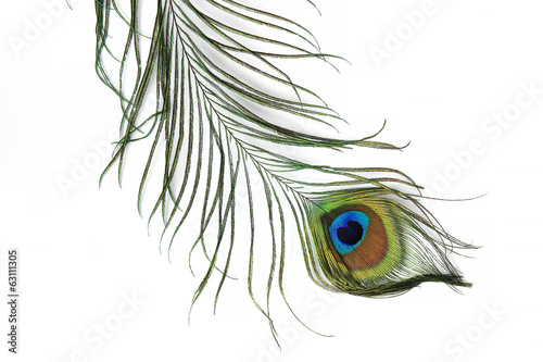 © mariemilyphotos, Obraz premium Peacock feather isolated on white background