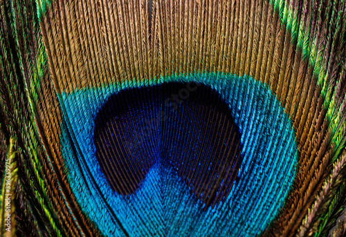 © Marijus, Obraz premium Peacock feather isolated on white background. Macro shot.