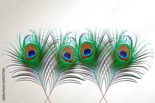 Obraz premium peacock feather isolated on white background with copy space