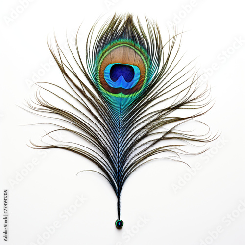 © Andrii Yablonskyi, Obraz premium peacock feather on a white background сreated with Generative Ai