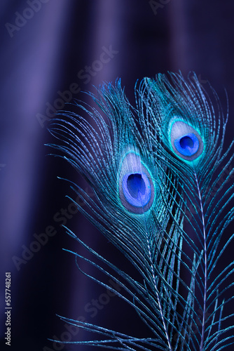 © Maya Kruchancova, Obraz premium peacock feather on background of velvet
