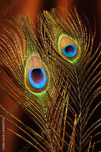 © Maya Kruchancova, Obraz premium peacock feather on background of velvet