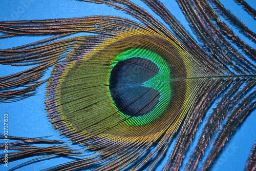 © Oleg, Obraz premium peacock feather on blue