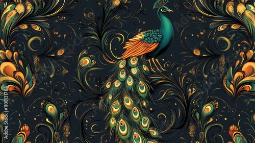 © Yeivaz, Fototapeta premium Peacock Feather Pattern Art Deco Style