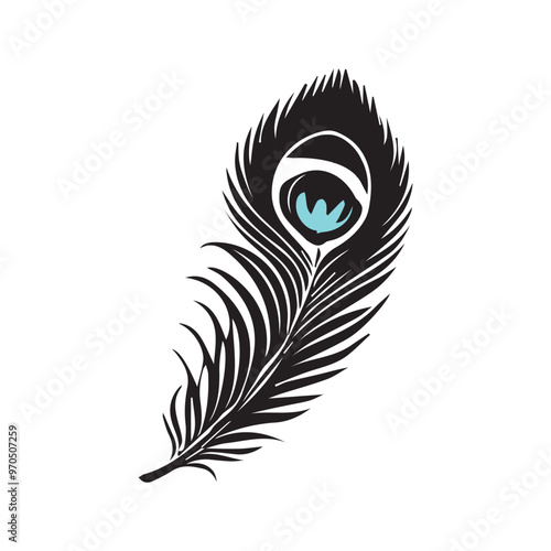 © Shineoxstock, Obraz premium Peacock feather quill pen vector - quill pen illustration in black and white