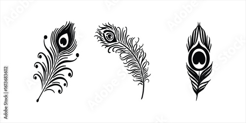 © MOMENIN SUNNY, Obraz premium peacock feather silhouette vector hand drawn illustration on white background.