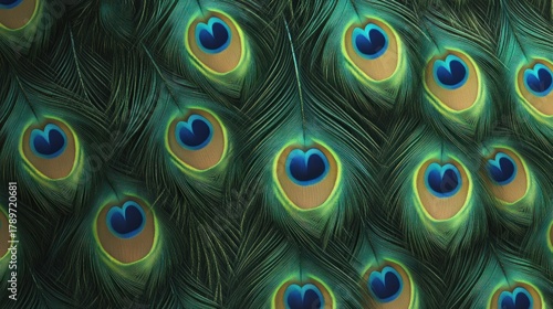 © IES Astro Stock, Obraz premium Peacock Feather Texture. Close-Up Peacock Feathers. Colorful Peacock Pattern. Vibrant Peacock Plumage Texture. Detailed Peacock Feather. Peacock Feather Surface. Colorful Peacock Feathers Close up.