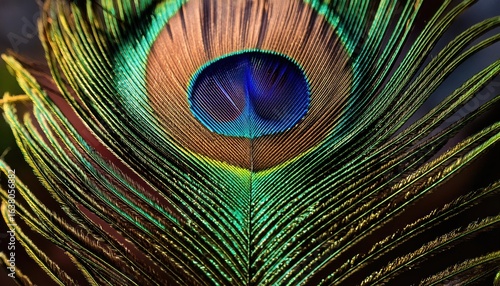 © Indian Gallery, Obraz premium Peacock Feather Wallpaper - Detailed Bird Feather Background for Krishna Janmashtami