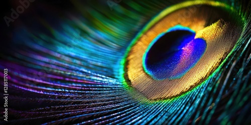 © SweetCommercial, Naklejka premium Peacock feather with a blue and yellow center
