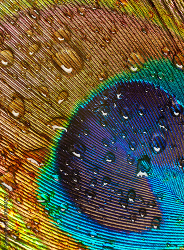 © Nik_Merkulov, Obraz premium Peacock feather with drops of water