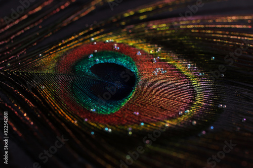 © Bidzilya, Naklejka premium Peacock feather with shiny balls on it.