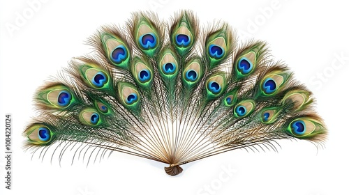 Fototapeta premium Peacock Feathers Arranged in a Fan Shape