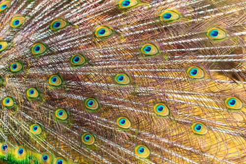 © schankz, Fototapeta premium Peacock feathers on nature as background