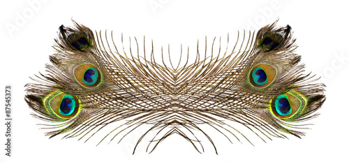 Obraz premium Peacock feathers on white background