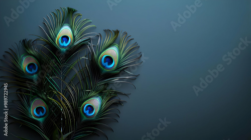Obraz premium Peacock Feathers with Copy Space on a Blue Background