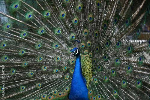 © cn.ycl, Naklejka premium Peacock has a wonderful visual beauty with its colorful fluffy feathers.