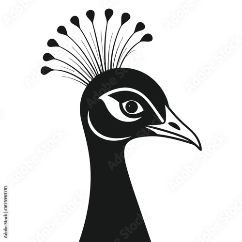 © Nasir, Fototapeta premium Peacock Head Silhouette Vector Elegant Black Design