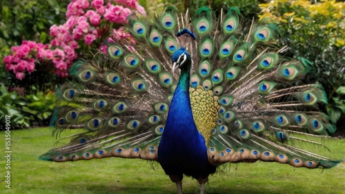 © cutecat, Obraz premium Peacock in a garden setting