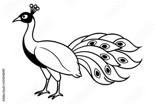 © Pinak, Fototapeta premium peacock line art silhouette vector illustration