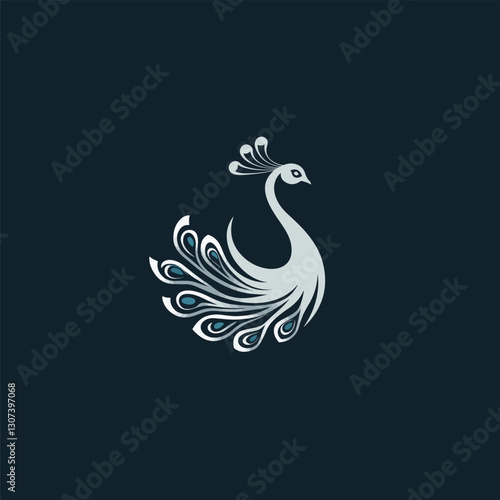 © Amremite〆, Obraz premium peacock logo design with a towering tail and a leaf shape