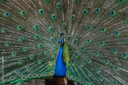 © PepeGarcia, Obraz premium Peacock outlining next to chickens