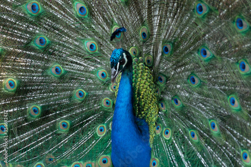 © PepeGarcia, Obraz premium Peacock outlining next to chickens