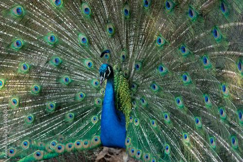 © PepeGarcia, Obraz premium Peacock outlining next to chickens