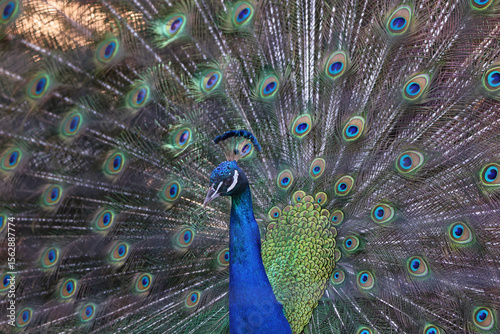 © vlad_g, Naklejka premium Peacock portrait with his open tail, zoom in