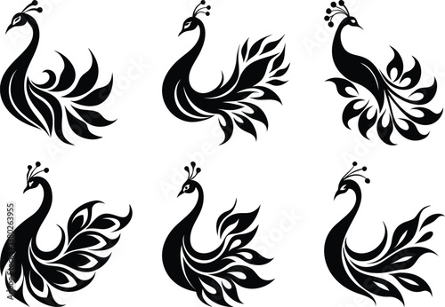 Obraz premium Peacock silhouette isolated on a white background.