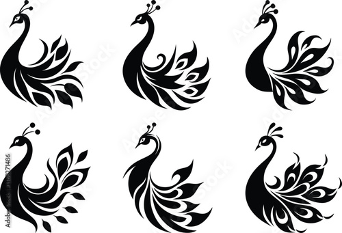 © Rani, Obraz premium Peacock silhouette isolated on a white background.