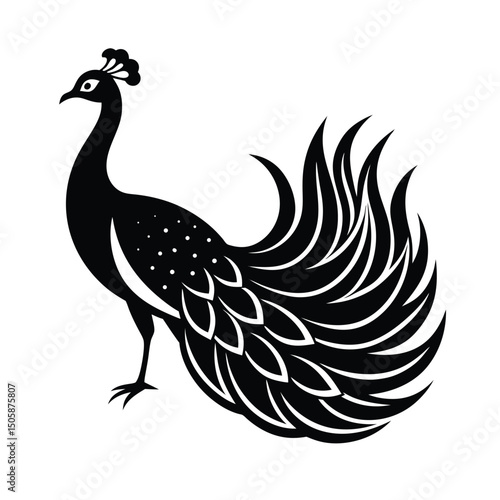 © MstShanag, Obraz premium Peacock Striking Vector Silhouette Art