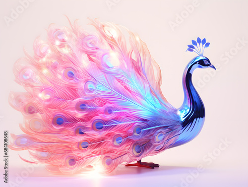 © wing, Obraz premium Peacock with colorful crystal feathers on the white background. 3d illustration