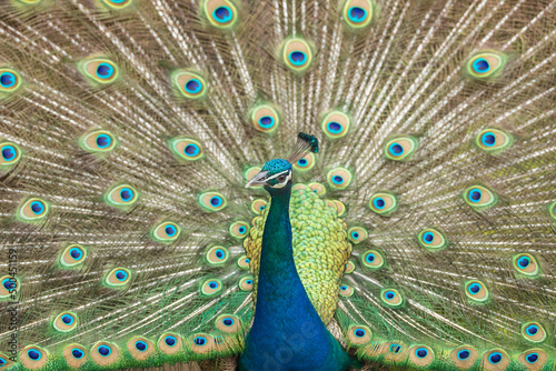 © Tyrone, Naklejka premium Peacock with feathers out