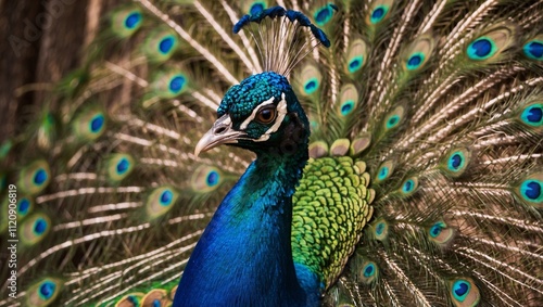 Fototapeta premium peacock with feathers out, beautiful plumage