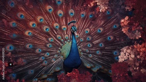 © hongjian, Obraz premium Peacock with its feathers spread