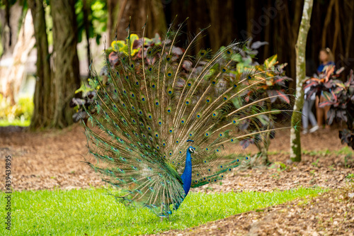 © Felix Mizioznikov, Obraz premium Peacock with tail feathers fully open mating show