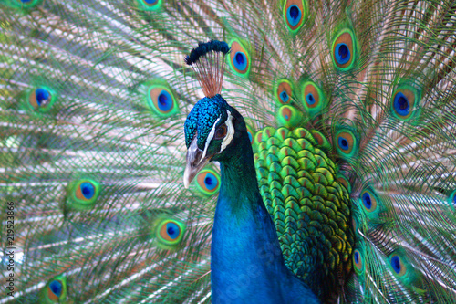 © MICHEL, Fototapeta premium Peacock with tail in plume spread