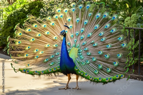 Obraz premium Peacock with vibrant tail feathers in full display.