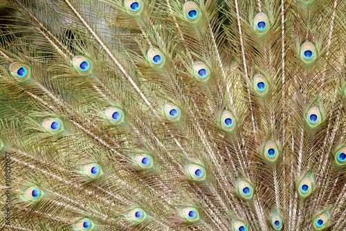 © Gatot, Obraz premium Peacocks pattern or texture. Colorful and Artistic peacock feathers banner or panorama.