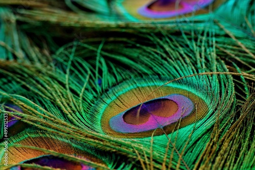 © Jalpa Malam, Naklejka premium Peafowl feather closeup. Peacock feather background. Abstract background. Mor pankh.