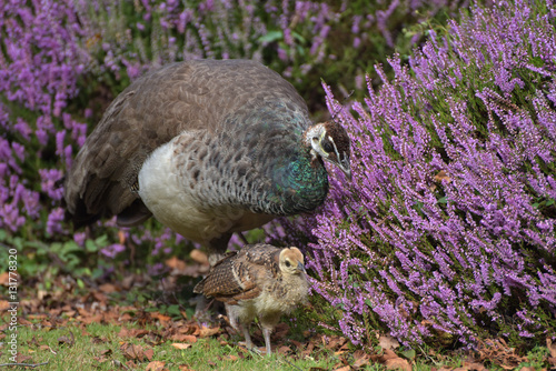 © davidyoung11111, Fototapeta premium Peahen with chick on Brownsea Island in Poole Harbour, Dorset