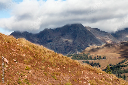 Fototapeta premium Peak covered with a low hanging cloud in the autumn
