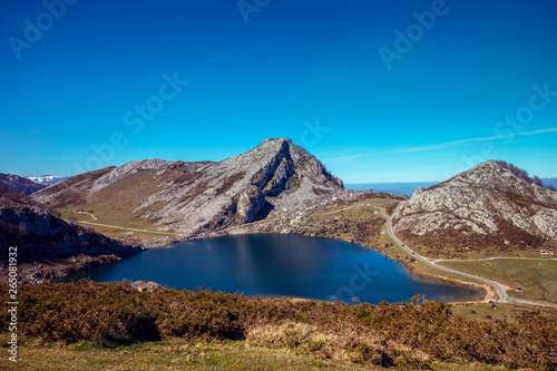 Fototapeta premium Peaks of Europe (Picos de Europa) National Park. A glacial lake Enol. Asturias, Spain, Europe