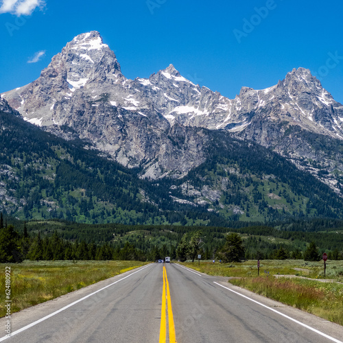 Fototapeta premium Peaks of Grand Teton Range during summer sunny weather