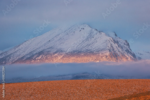 Fototapeta premium Peaks of High Tatras at dawn, beautiful outdoor winter background