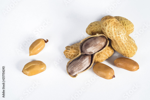 Obraz premium Peanuts in shells on white background.