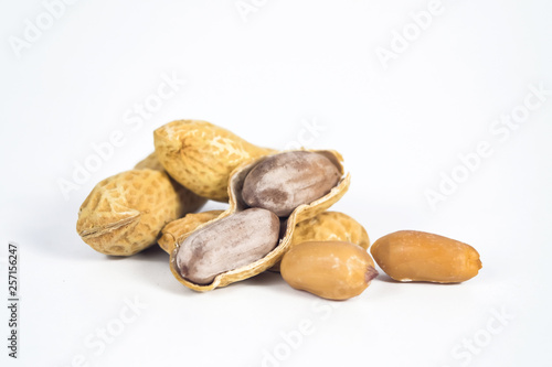 © amnarj2006, Obraz premium Peanuts in shells on white background.