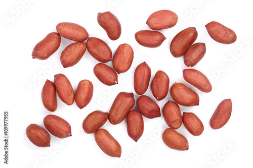 Obraz premium peanuts isolated on white background top view. Flat lay
