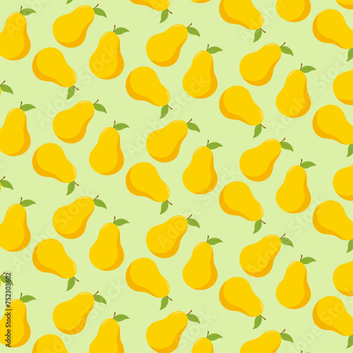 © Tetiana, Obraz premium Pear pattern. Food print for kitchen tablecloth or kitchen towel. Vector illustration.