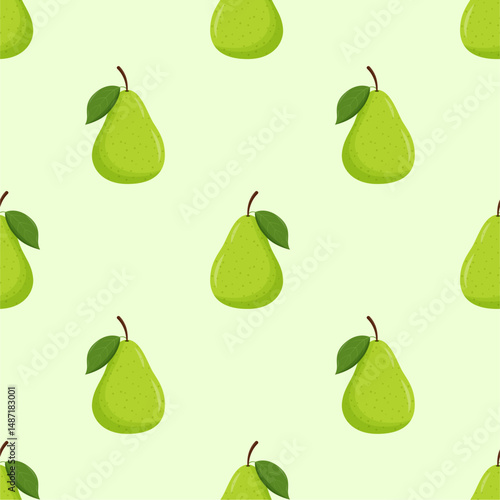 © applesweetpattern, Obraz premium Pear seamless pattern. Fruit background. Beautiful vector print.
